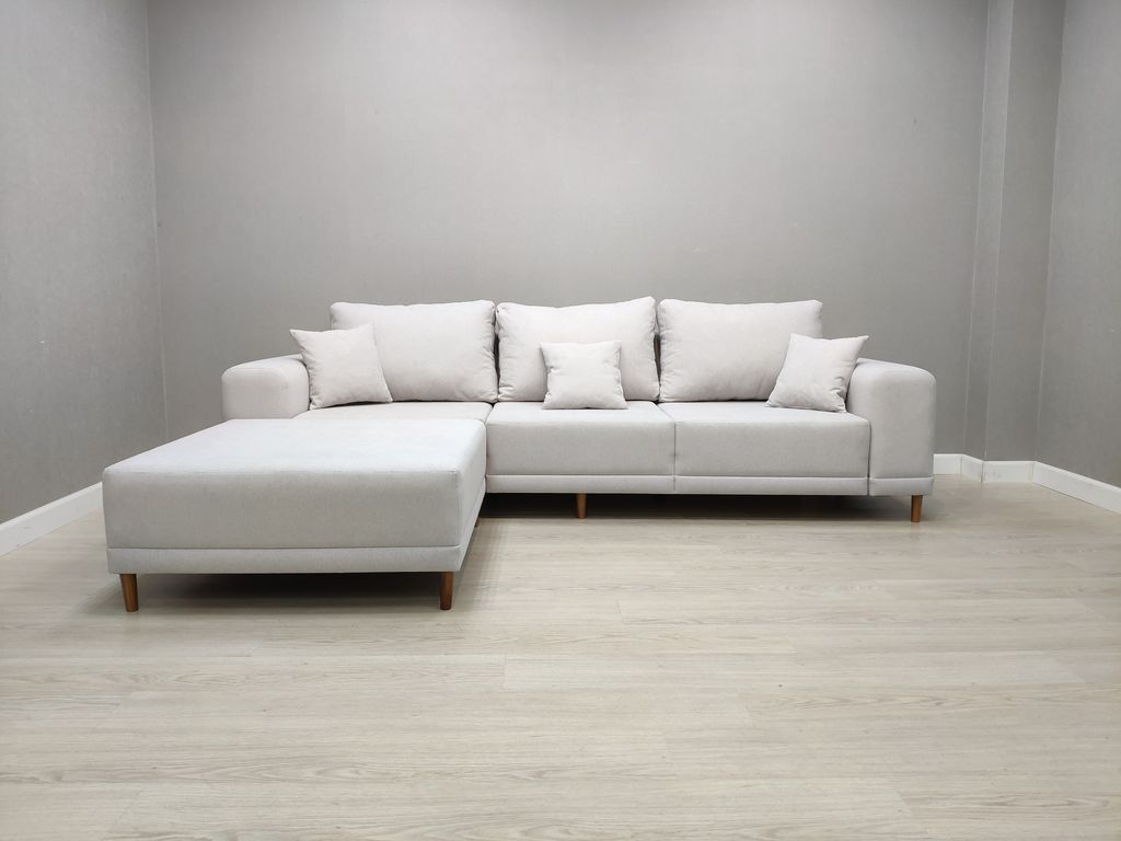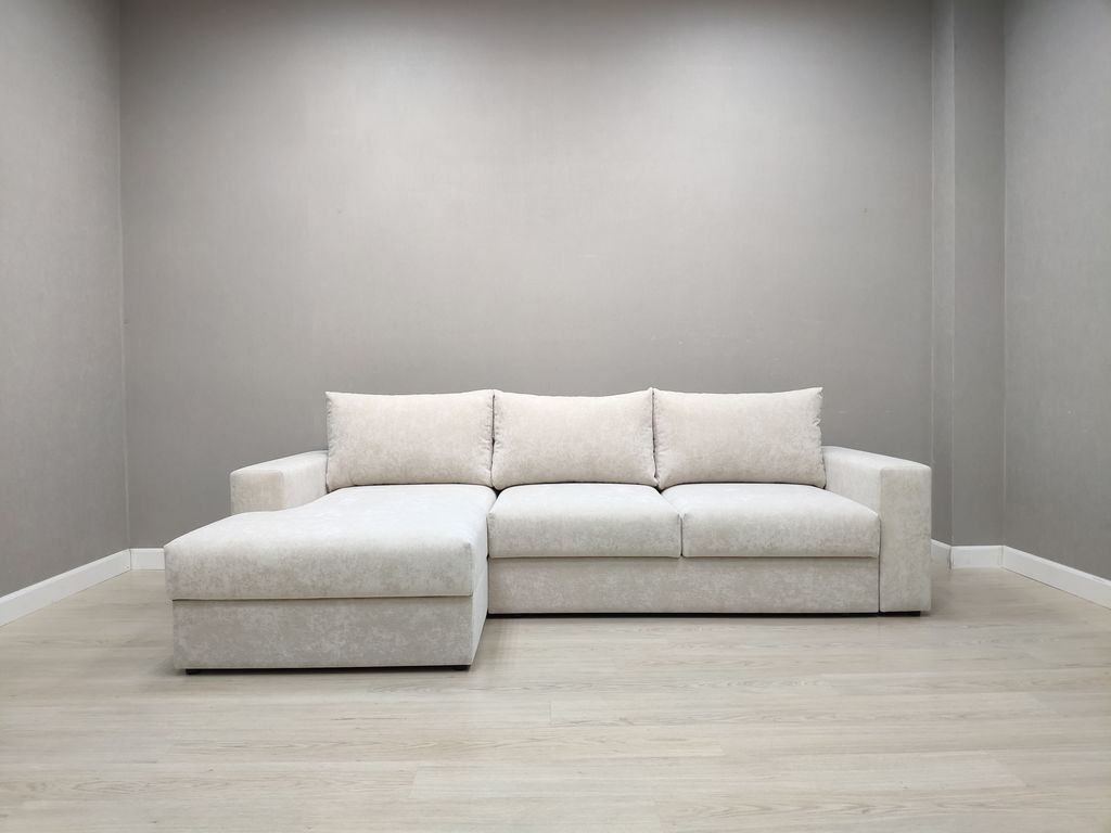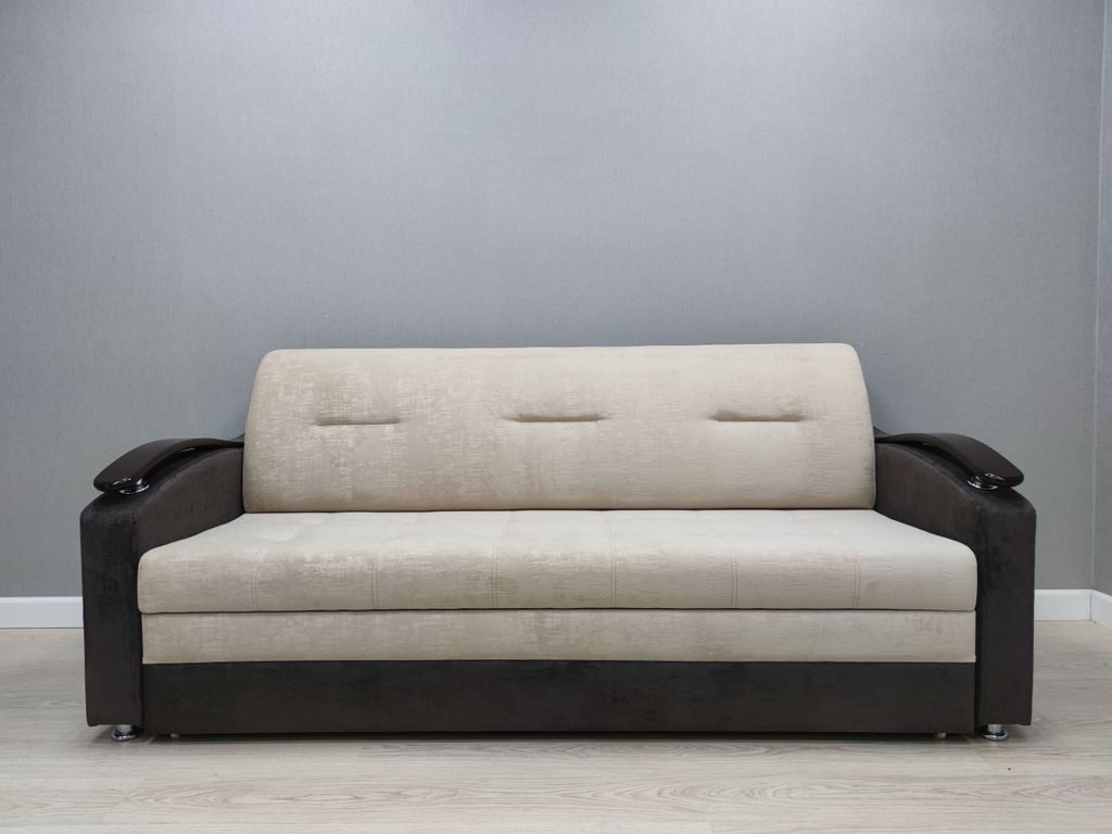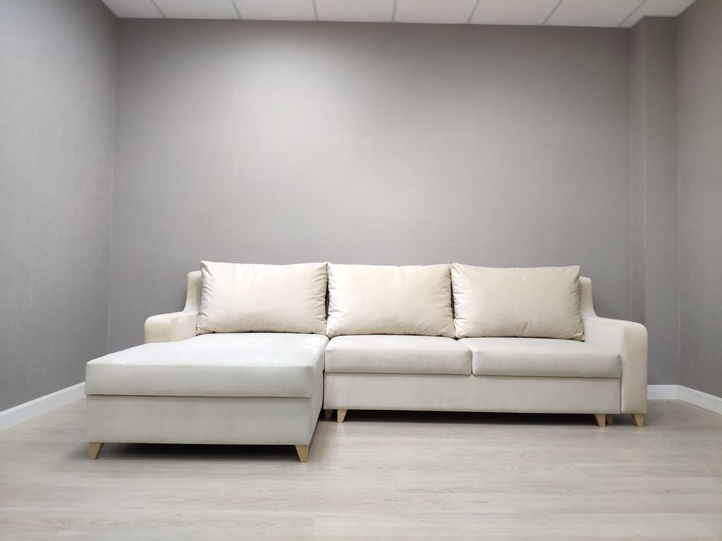 Минималистичный бежевый диван аккордеон отличается строгими чистыми линиями и лаконичным дизайном, идеально вписывается в интерьер в стиле минимализм. Обивка выполнена в спокойном цвете, который создает ощущение тепла и уюта, при этом остаётся нейтральным и универсальным оттенком.