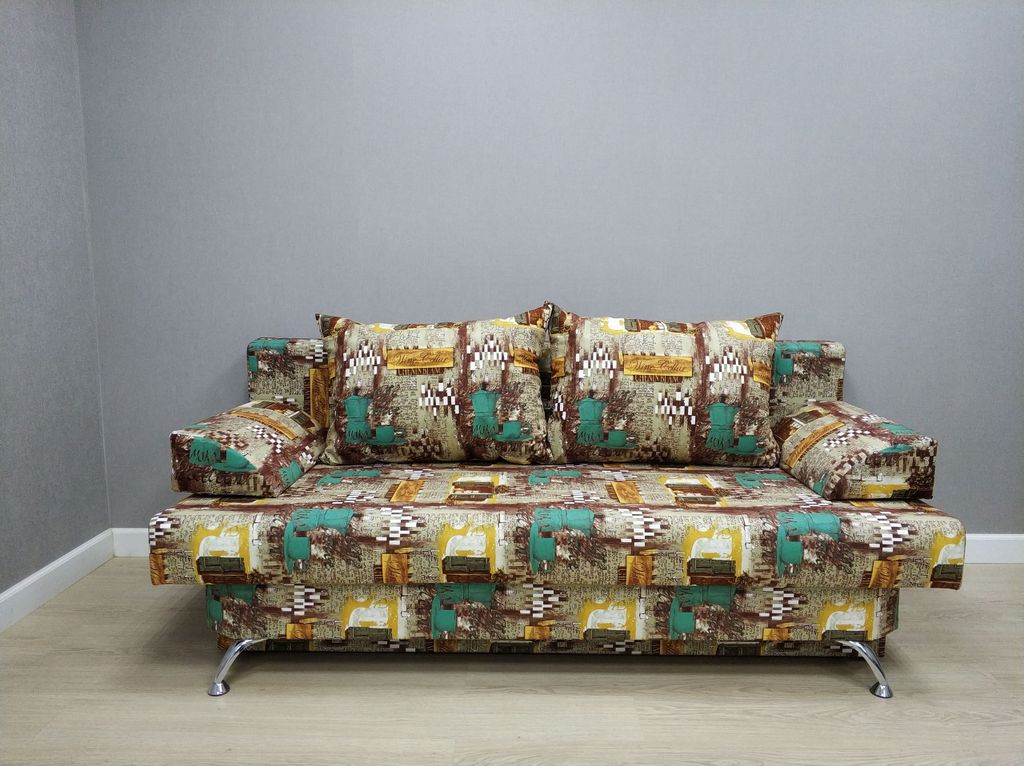 Этот диван-аккордеон привлекает внимание своим изысканным дизайном и функциональностью. Обивка выполнена из ткани с утонченным узором, который придает изделию уют и стиль. Орнамент включает нежные цветочные мотивы, создавая эффект легкости и гармонии в интерьере.