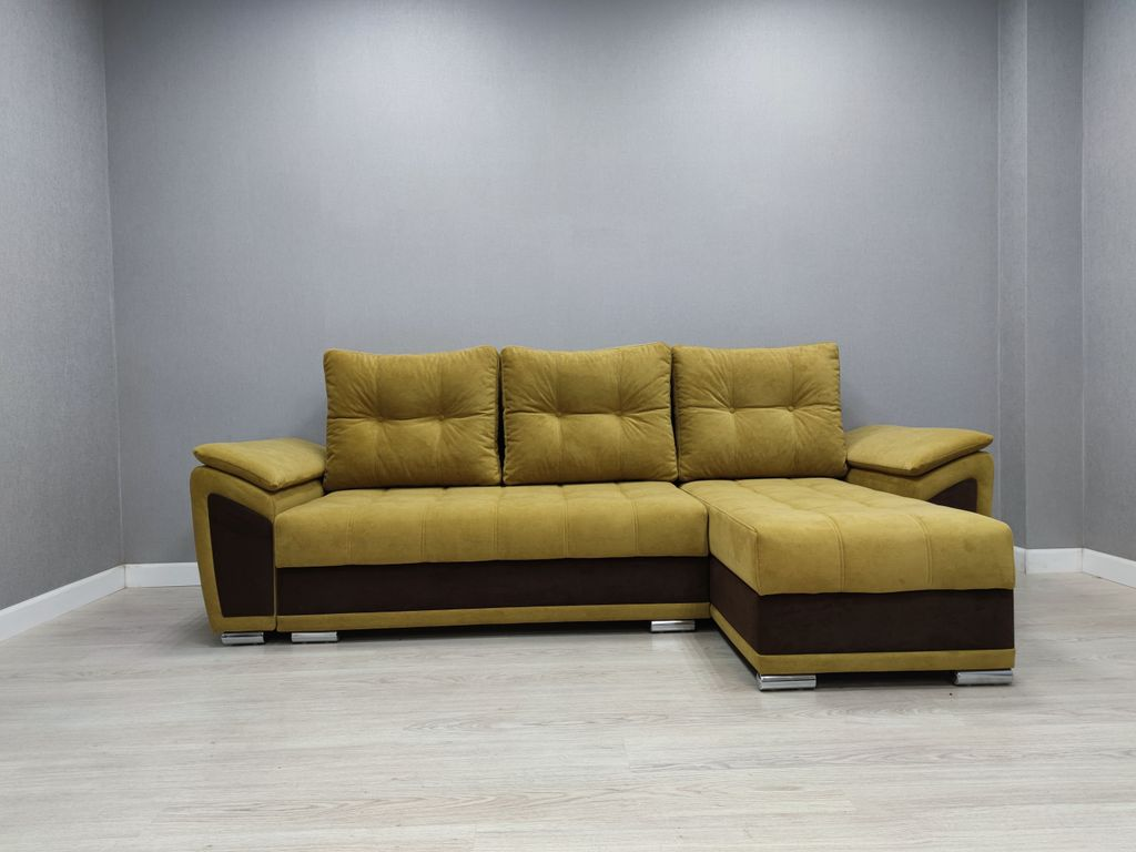 Серый диван аккордеон с жёлтыми деталями — стильное и функциональное решение для современного интерьера. Нейтральный серый цвет создаёт спокойную базу, а яркие жёлтые акценты добавляют яркости и сочности, подчёркивая уникальность дизайна. Механизм аккордеон обеспечивает лёгкую трансформацию в удобное спальное место, что делает диван практичным для гостиной или компактной квартиры. Такой диван отлично сочетает в себе комфорт, современный стиль и удобство использования.