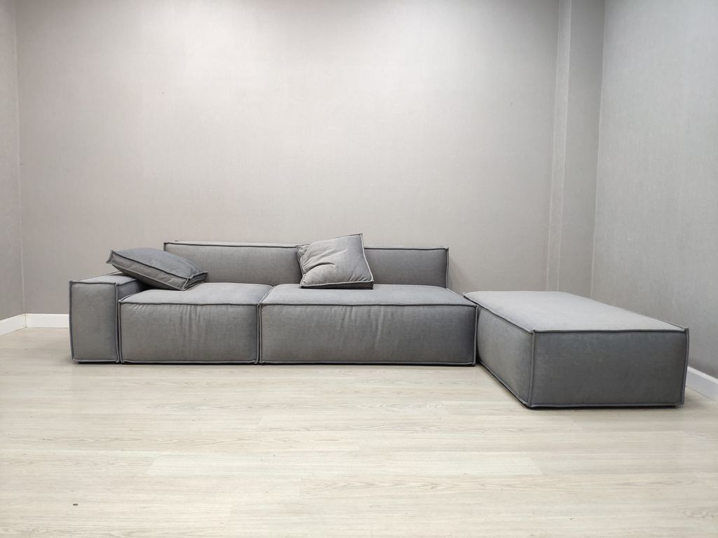 Строгие формы дивана с оттоманкой «Консул 3», подчеркнуты контрастным кантом. Что в совокупности дает современное и стильное решение для вашего дома. Модульная система, даст волю Вашим интерьерным идеям. В комплект мы добавили поясничные подушки, перекликающиеся кантом с основным силуэтом дивана.
