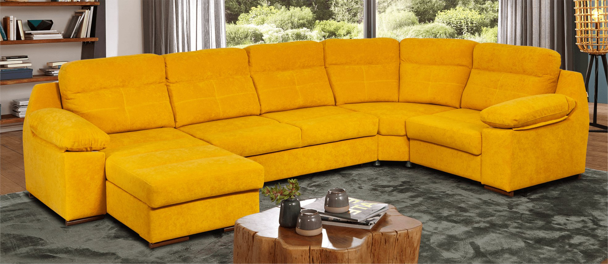 Угловой диван «Люкс 5», отличается особой мягкостью, которая присуща всей линейке «Люкс», благодаря гипоаллергенному, полиэфирному наполнителю. Особый стиль этой модели придает изящная форма подлокотников, в виде декоративных лепестков, что при правильном подборе ткани создает более сложный визуальный эффект.