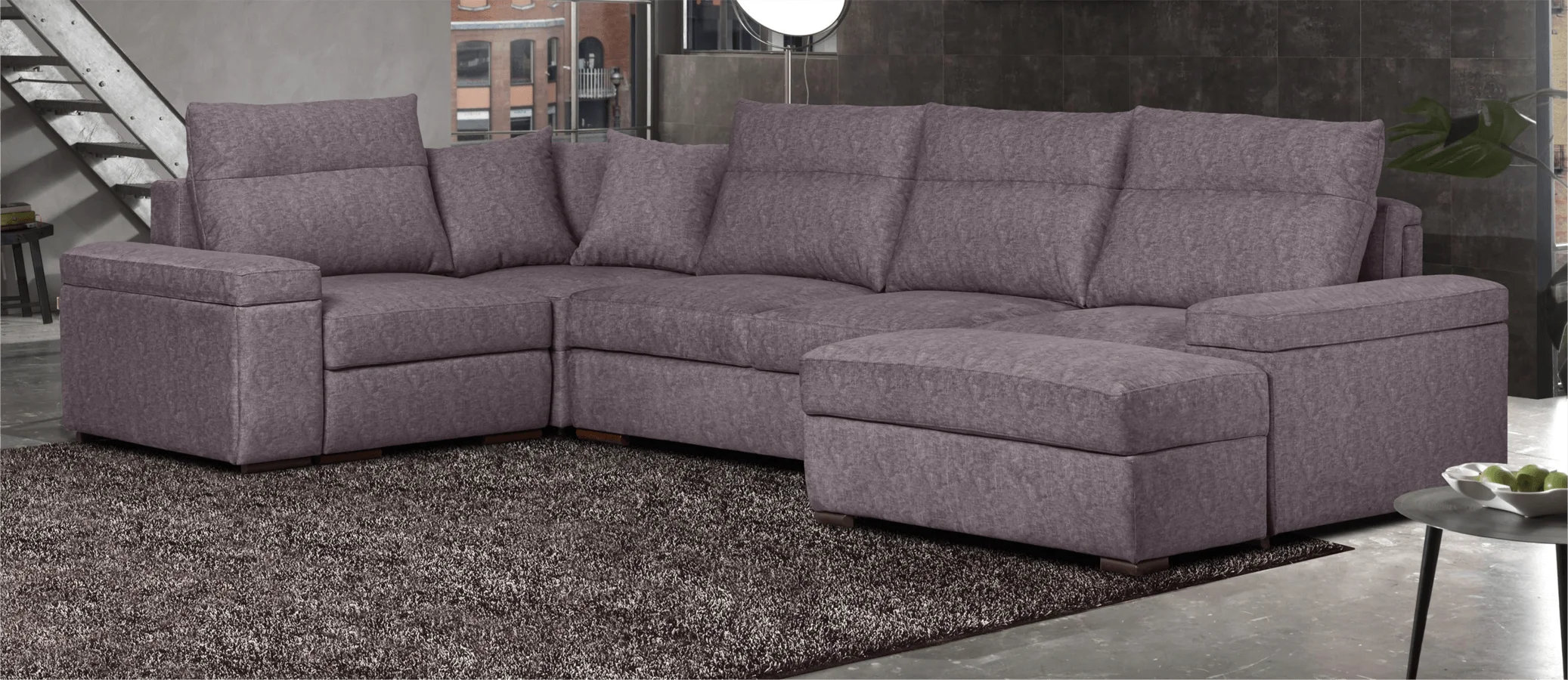 Оттоманка дивана, это не только вместительный бельевой ящик, но и комфортное место для отдыха полулежа. Диваны этой серии, выделяются необычной формой спинки, что задает ему роскошный боковой профиль с мягкими подлокотниками. Благодаря уникальной модульной системе, возможно, собрать необходимую конфигурацию дивана.