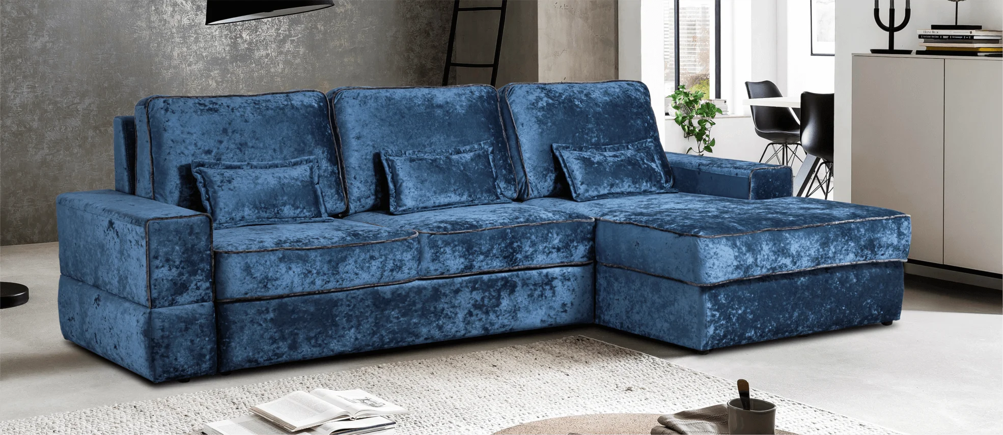 Этот диван выполнен в лаконичном минималистичном стиле с насыщенным синим оттенком, который добавляет интерьеру свежести и глубины. Чистые линии и простая геометрия подчеркивают современный дизайн, делая модель универсальной для разных помещений.