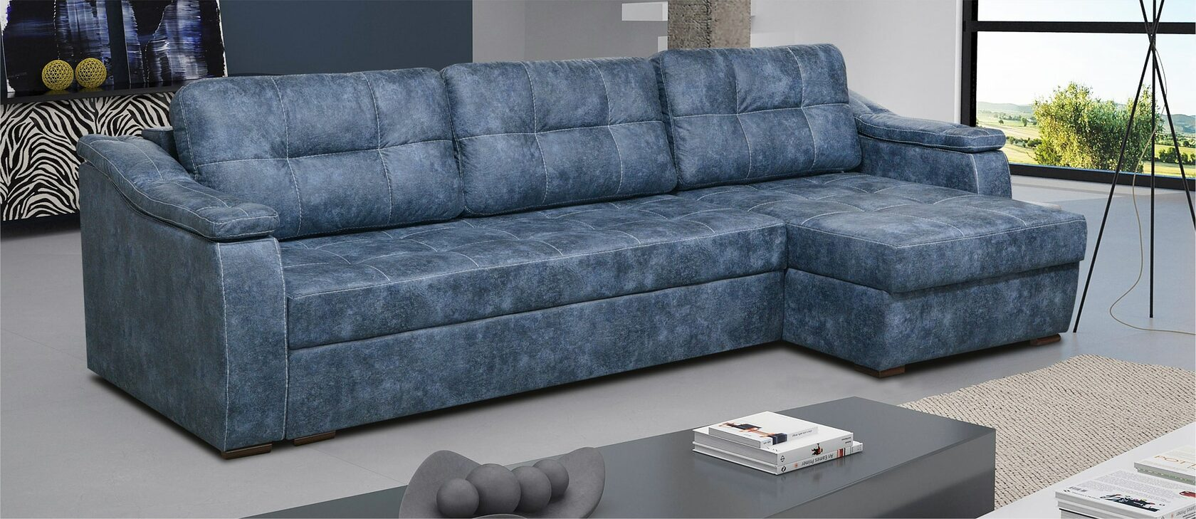 Модель «Алекс 1» с оттоманкой, это не только возможность занять самое удобное положение во время отдыха, но и практично воспользоваться большим отсеком для хранения белья и многих других вещей. В этом диване сочетается удобство мягких подлокотников и широких подушек спинки, с эстетикой перекликающейся прострочки.