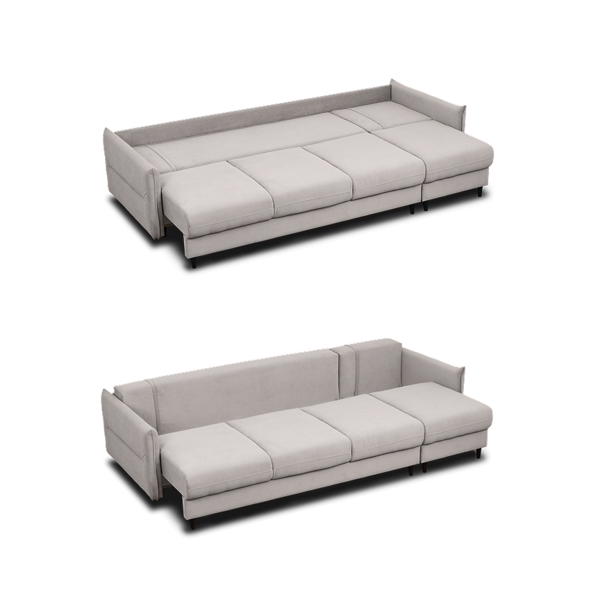 «Агата 7», комплектуется мягкими объемными подушками, они еще больше усиливают контраст ножек и пышных форм модели. Безусловно, высокие ножки придают визуальную легкость конструкции, и делают возможным уборку под ней, роботом-пылесосом.