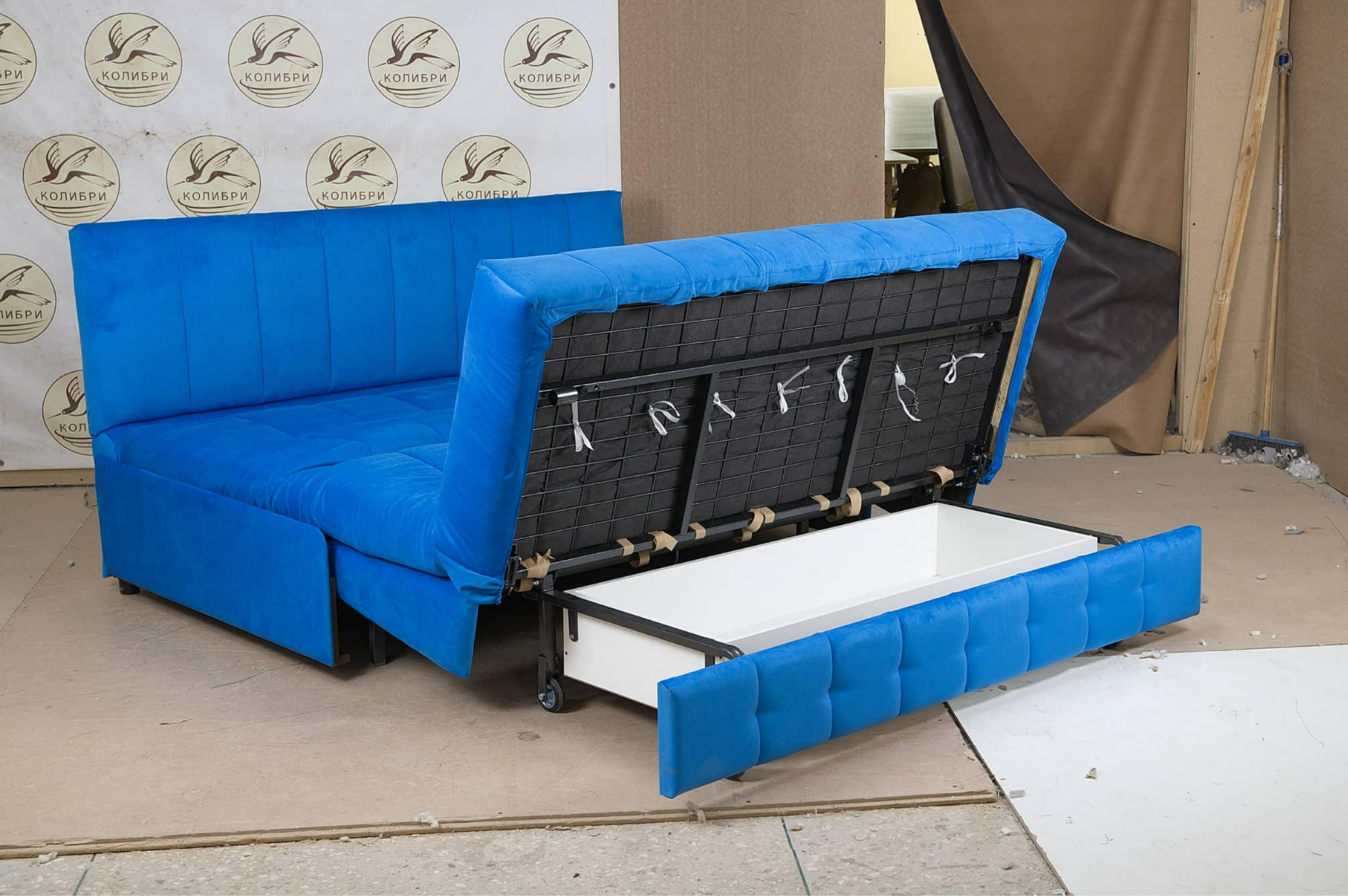 Этот диван выполнен в лаконичном минималистичном стиле с насыщенным синим оттенком, который добавляет интерьеру свежести и глубины. Чистые линии и простая геометрия подчеркивают современный дизайн, делая модель универсальной для разных помещений.