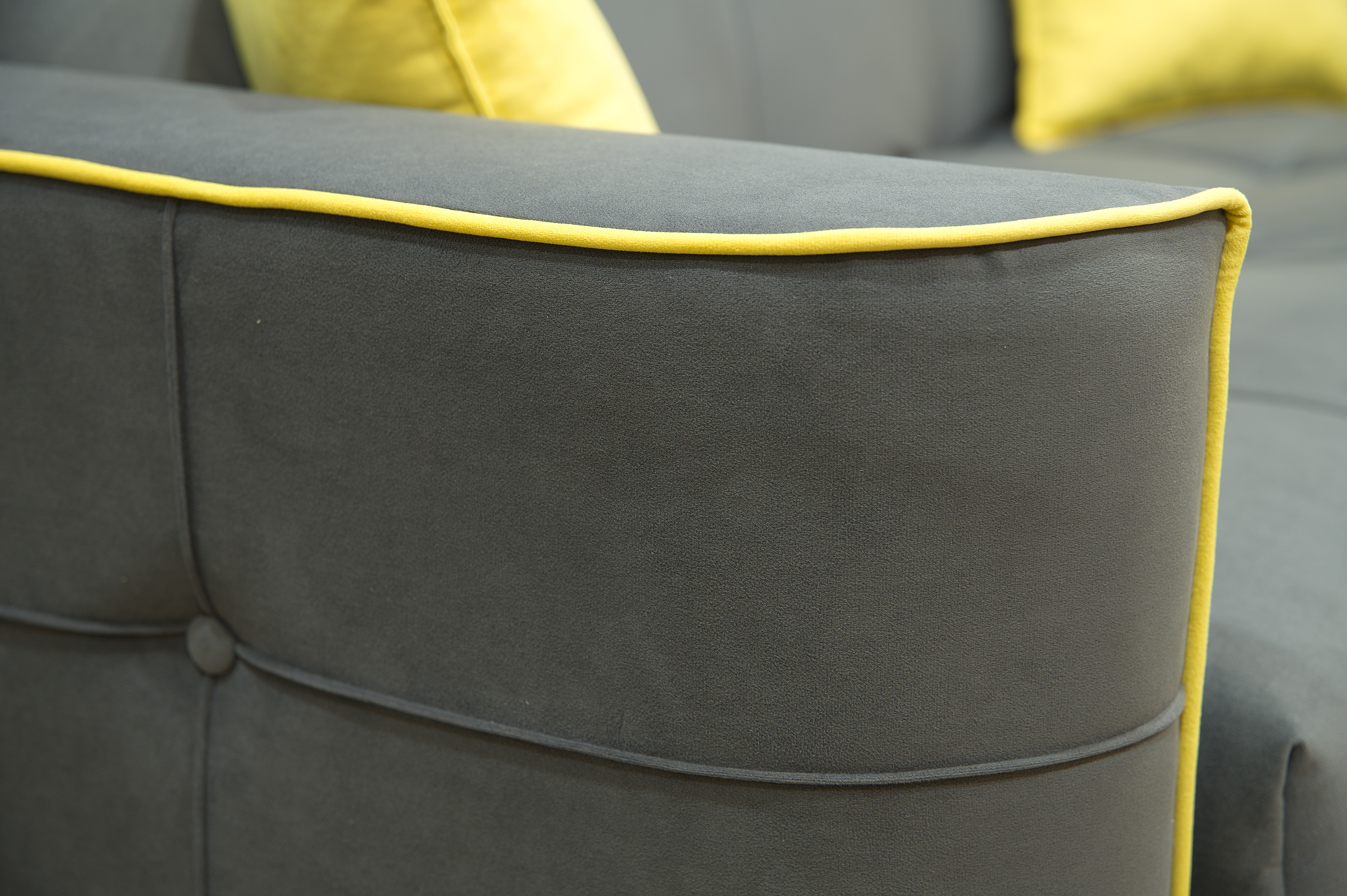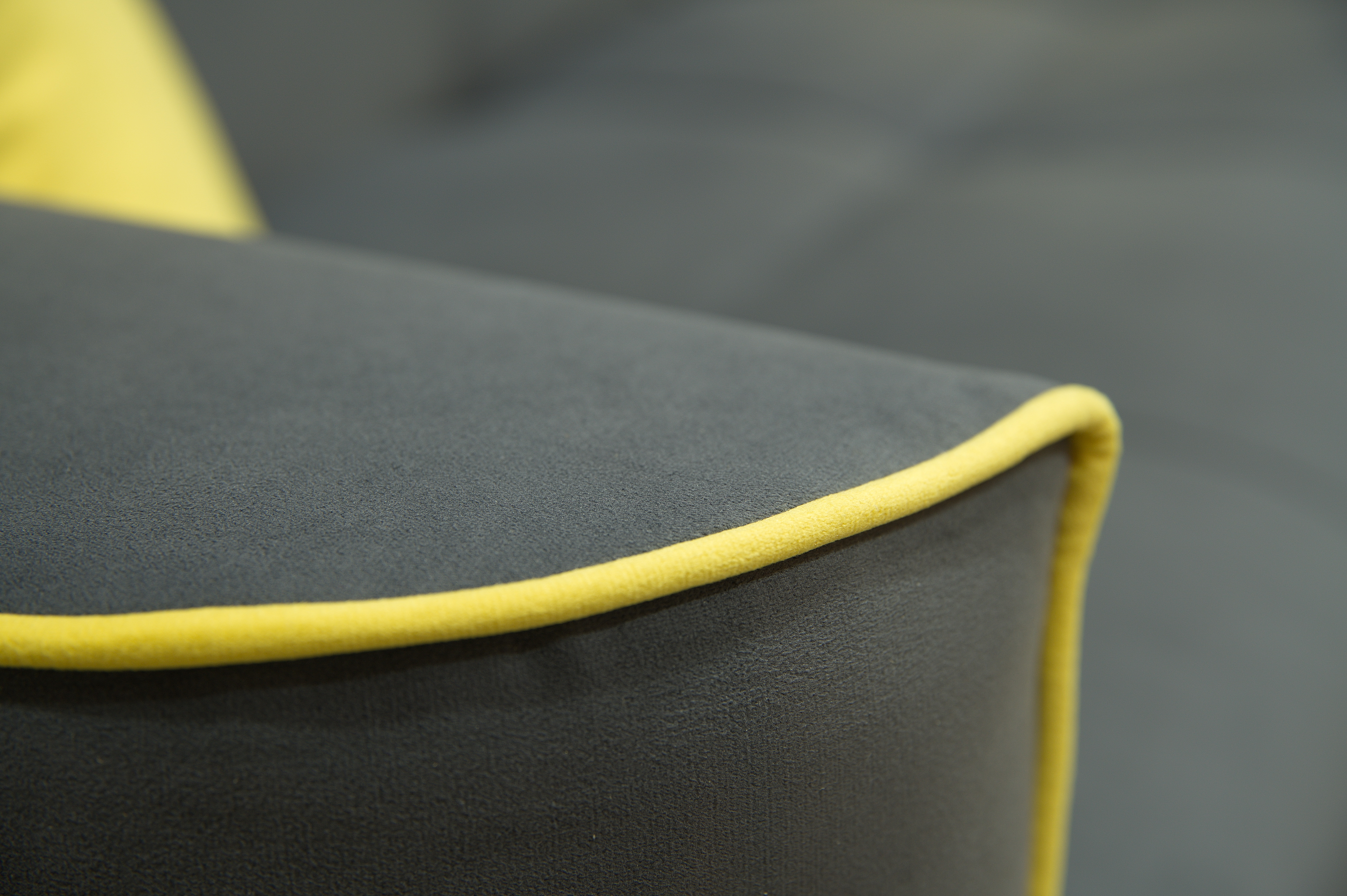 Серый диван аккордеон с жёлтыми деталями — стильное и функциональное решение для современного интерьера. Нейтральный серый цвет создаёт спокойную базу, а яркие жёлтые акценты добавляют яркости и сочности, подчёркивая уникальность дизайна. Механизм аккордеон обеспечивает лёгкую трансформацию в удобное спальное место, что делает диван практичным для гостиной или компактной квартиры. Такой диван отлично сочетает в себе комфорт, современный стиль и удобство использования.