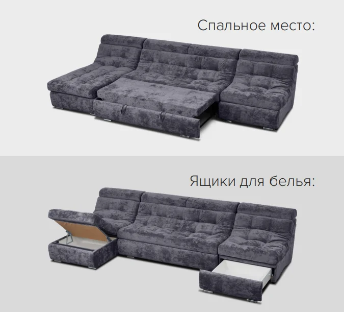 Модульная система «Монро 1» позволит реализовать любые задумки в планировке. Простой компоновкой модулей, Вы получите желаемое место для отдыха и совместного времяпровождения с друзьями или всей семьей. Сиденье и спинка дивана исполнены одним целым, что бы повторять форму Вашего тела для максимального «релакса».