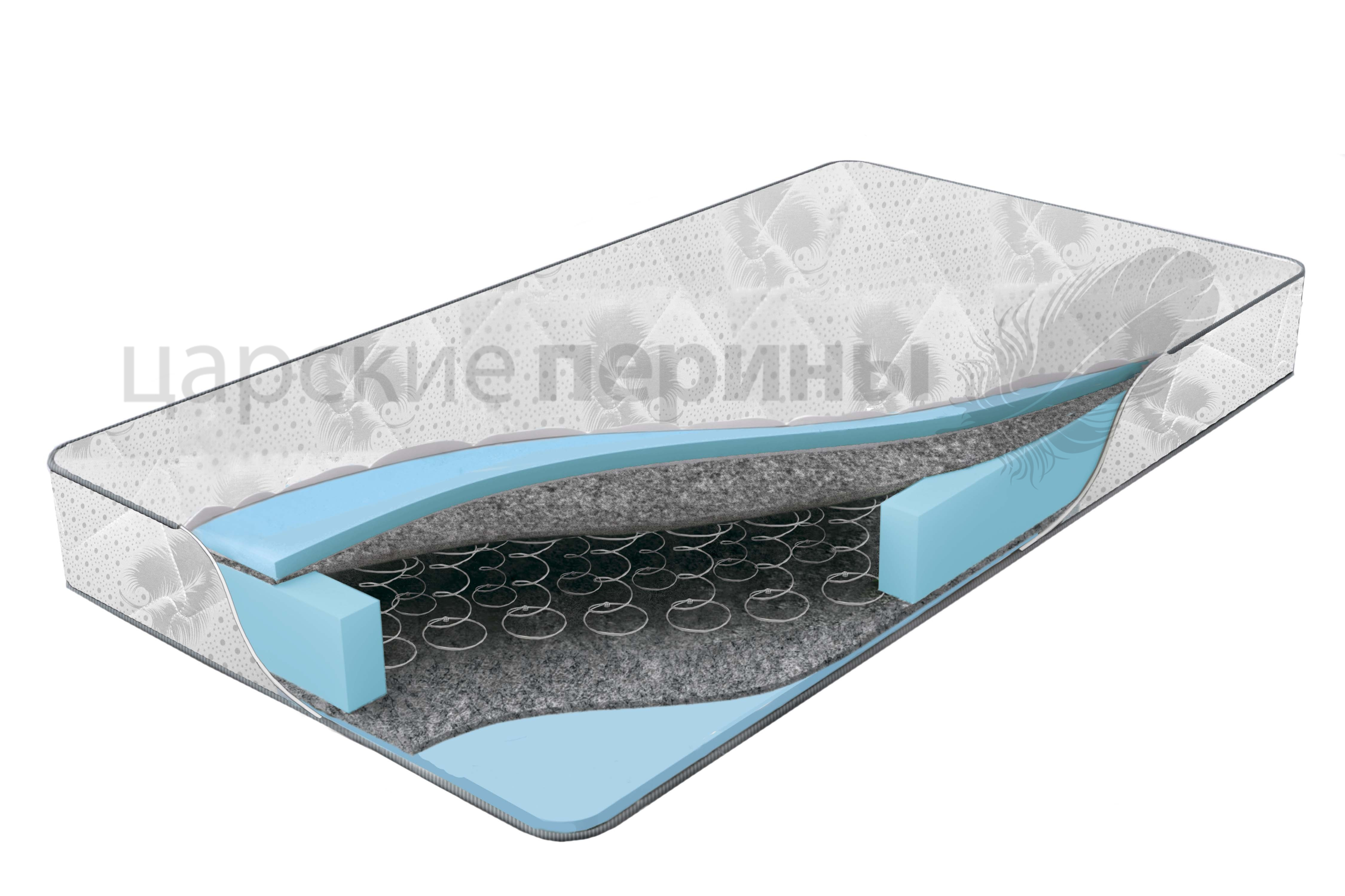 Основа данного матраса зависимый пружинный блок Боннель, с обеих сторон покрытый термоскрепленным войлоком и аэропеной. Чехол матраса из эластичного полотна, стеганного на аэрофайбере. Основные достоинства данной модели - надежность в эксплуатации и доступная цена. Рекомендованная нагрузка до 100 кг на одно спальное место. Рекомендуется для дачи и гостевых спален.
